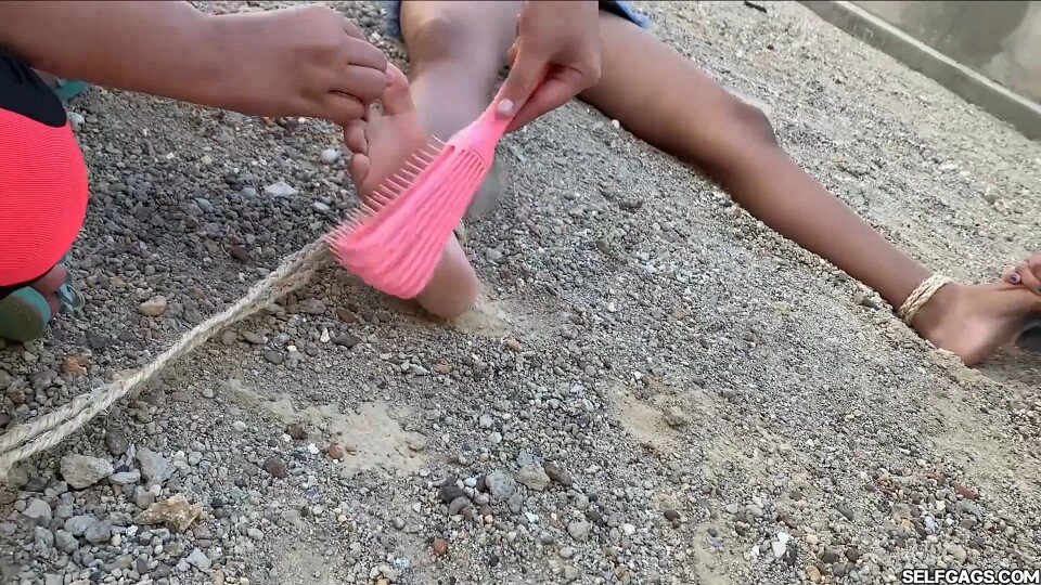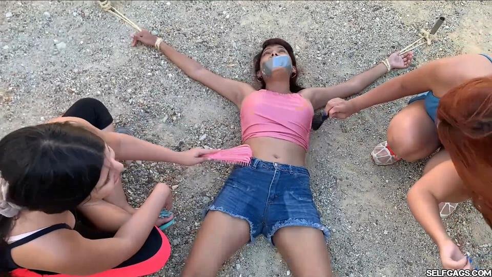 Included in this clip: tickle bondage, barefoot tickling, outdoor bondage, spread eagle tie, sock gag, duct tape gag, armpit tickling, stepsister domination, tied and tickled, latina bondage, hairbrush tickling, foot fetish, girl-on-girl domination, struggling girl, female bondage, gag talk, real reactions