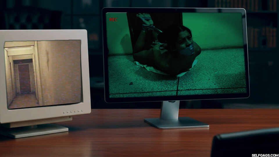 Included in this clip: hogtie bondage, duct tape gag, nude captive, basement captivity, hogtaped, surveillance voyeur, Latina submissive, bound struggle, gagged pleading, emotional torment, CEO domination, office monitor feed, wife interruption, lights out panic, muffled sobs, tied soles, hallway camera, room surveillance, tearful begging, helpless wriggle, overnight abandonment, power play fetish